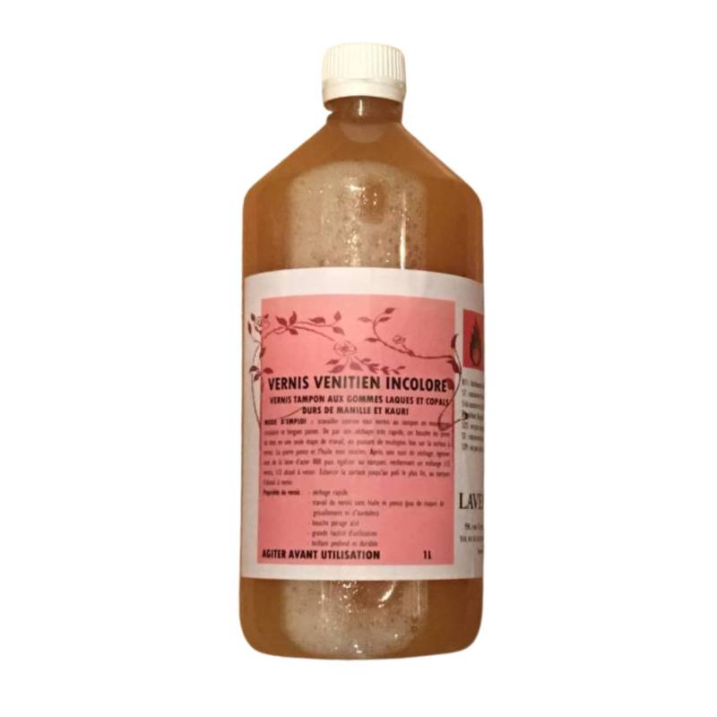 )Vernis au tampon aux gommes laques sélectionnées et aux copals durs de Manille et Kauri.